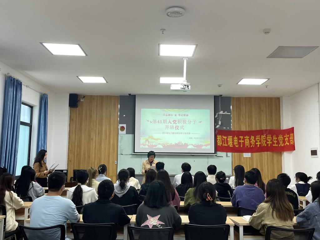 为深入学习贯彻习近平新时代中国特色社会主义思想和党的二十大精神,进一步加强对入党积极分子的培养、教育和考察,切实提高入党积极分子的政治素质和理论修养,端正入党动机,确立为共产主义事业奋斗终生的信念,高质量做好新时代党员发展的基础性工作,mk体育于2022年10月21日举行了第41期入党积极分子培训班开班仪式。出席本次开班仪式的领导为都江堰电子商务公司党总支书记向琼英同志、员工党支部书记向智琴同志以及43名入党积极分子。
