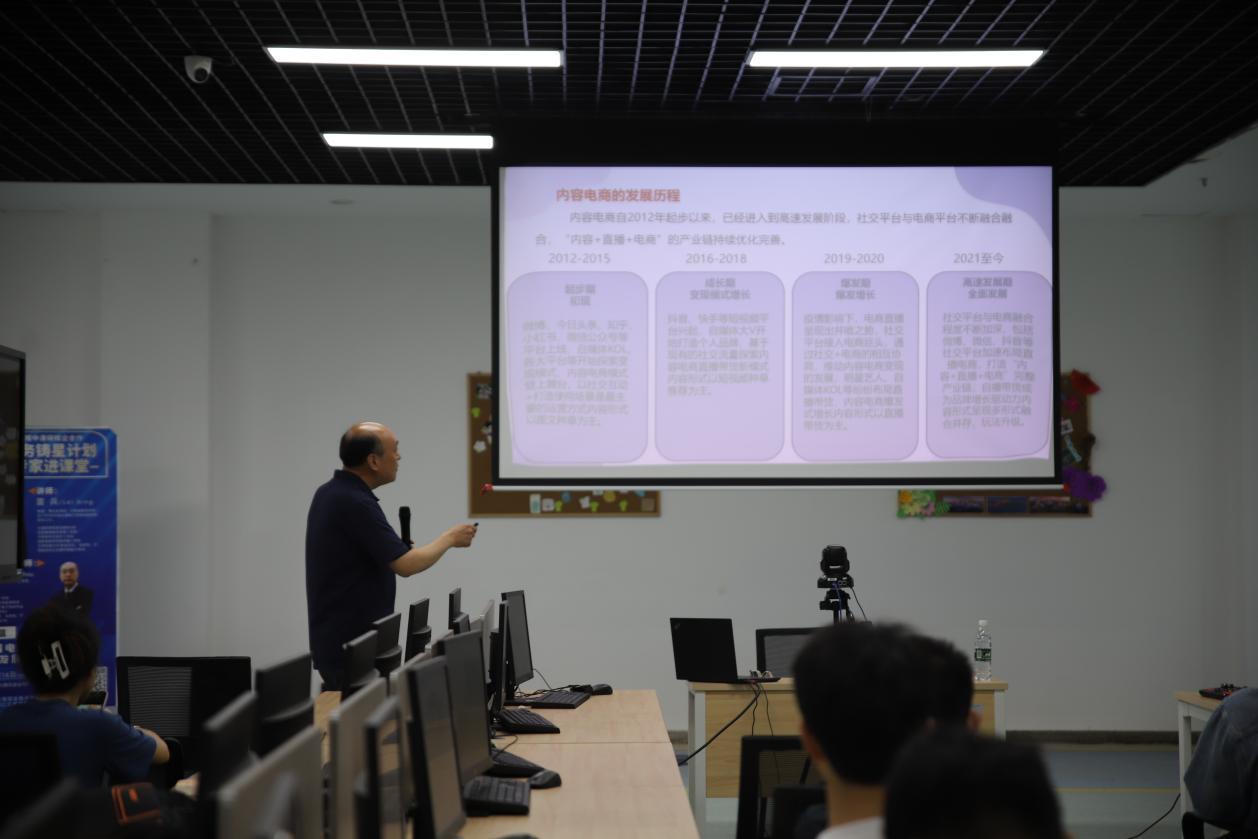 进一步增强员工对直播电商和内容电商的认知,促进员工就业能力提升,mk体育于2023年6月16日上午9:00举办了“直播电商和内容电商的发展现状和形式”主题讲座并进行同步线上直播。本次讲座邀请到了河南省教学名师、博士生导师雷兵教授及北京开放大学教学管理部主任、硕士生导师姚行洲教授,mk体育‍‍‍‍‍‍‍‍全体师生通过线上或线下的方式参加了此次讲座。