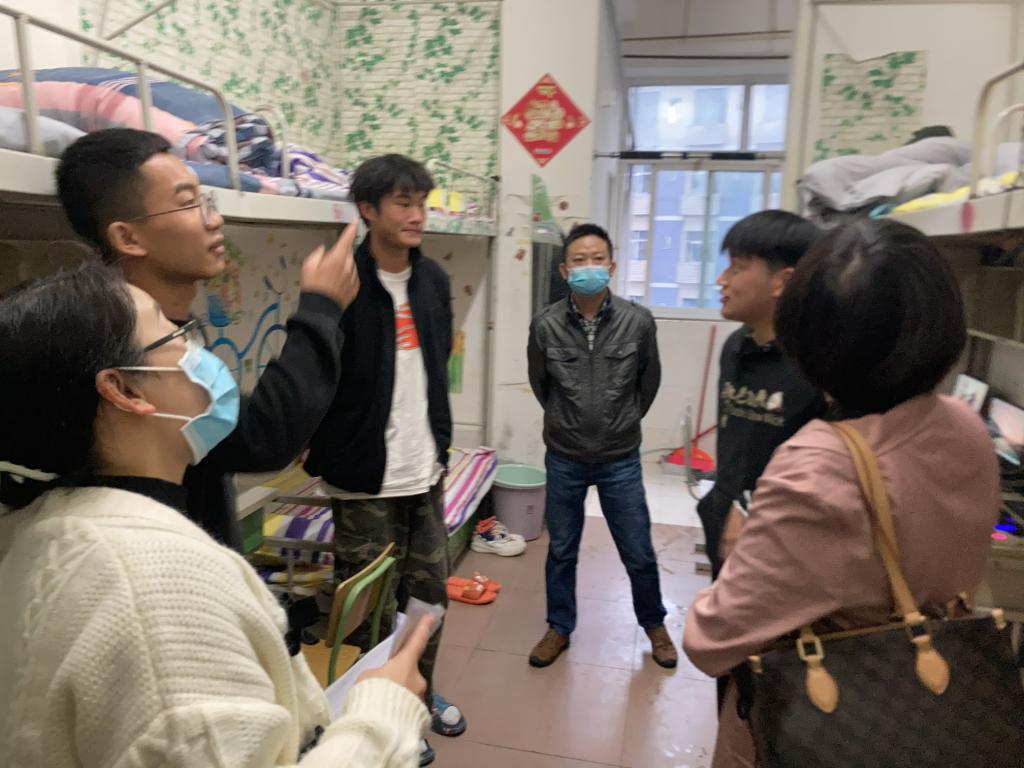 为了进一步了解新生们的情况,帮助他们尽快进入大学的学习生活状态,总支书记向琼英、经理宋少荣、副经理宋璐、党总支书记助理王瑀聖带领新生班级辅导员前往1号、3号、4号公寓探望同学们。