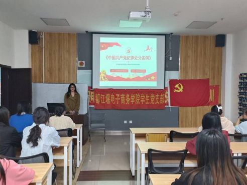 此次纪律教育活动主要是由曾海燕带领同学们学习《中国共产党纪律处分条例》。她不仅带领大家学习了前言、而且准确把握了《中国共产党纪律处分条例》修订的主旨要义:突出政治性,把坚决维护习近平总书记党中央的核心、全党的核心地位,坚决维护党中央权威和集中统一领导作为出发点和落脚点,还逐条学习了其全文内容。所有人都聚精会神的跟着学习,很好的展现了作为入党发展对象良好的精神风貌。学习完之后,邓玉敏带领大家进行了视频观影。最后是谢林沙进行了这次纪律教育活动的总结,总结《中国共产党纪律处分条例》作为管党治党的重要基础性法规的重要性和这次活动的内容。