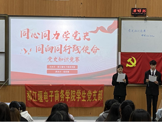 此次知识竞赛首先由主持人宣布活动正式开始并讲述活动规则,活动以小组进行,每组5位同学。整个比赛分为必答题,抢答题,风险题。本次活动设一等奖1组,二等奖1组,三等奖1组。在比赛中,各组选手从容应对,认真作答,每位选手都展示了自己优越的党史知识储备能力,比赛抢答异常激烈,场上时常出现等比分的情况,现场互动融洽,不息的掌声和幽默的串词,历史和今天有机的合力,让同学们在知识竞赛中加深了对历史的铭记和对祖国的热爱,这样的活动有利于发掘员工的潜力,发展个性特长,有利于陶冶情操,利于加强校园精神文明建设,增加学习的生机和动力。此次比赛旨在让同学们进一步了解党理论知识,认识并理解党的根本,拉近同学们和党之间的距离,提升同学们对党的思想觉悟。最后此次党史知识竞赛活动也圆满结束。