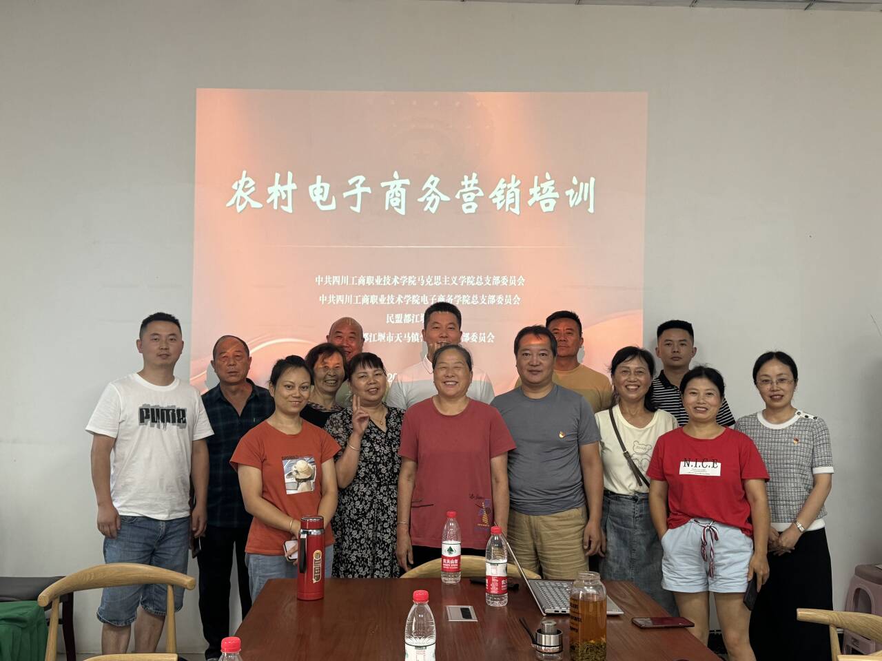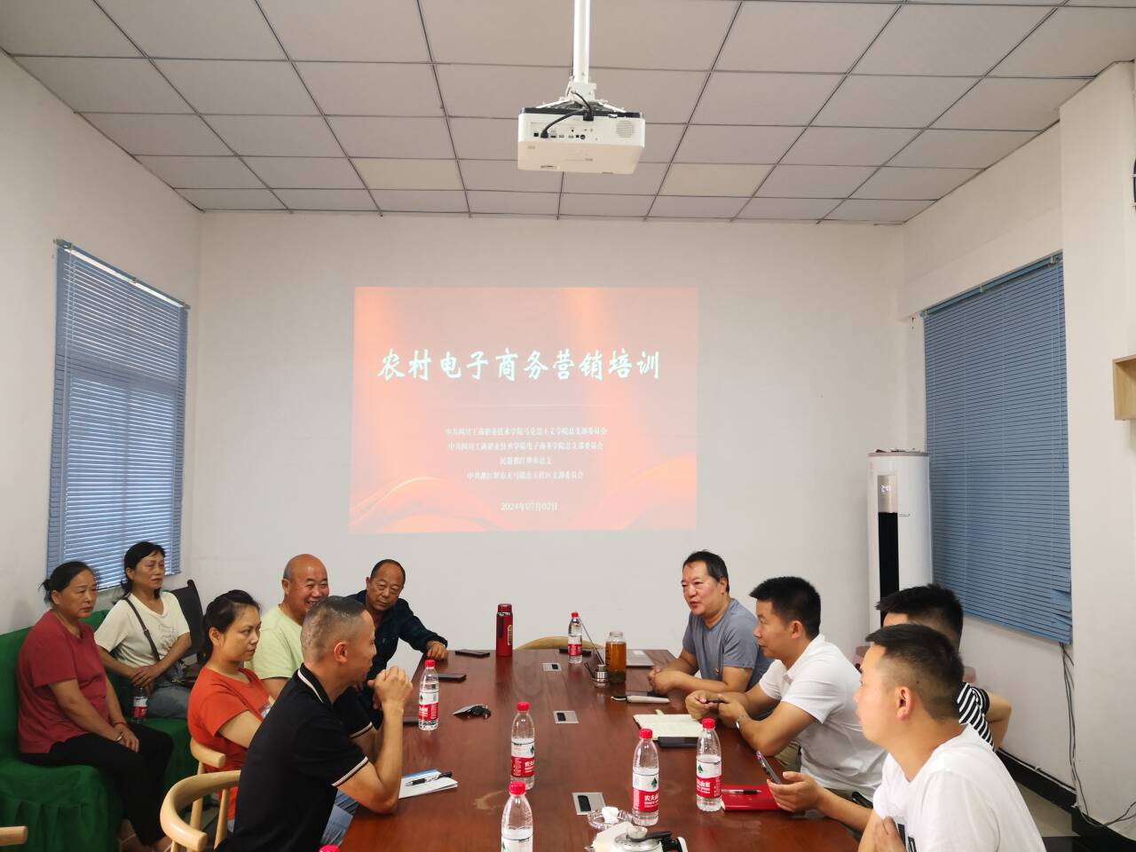 公司积极响应党和国家乡村振兴战略,发挥社会服务功能,依托四方结对共建平台“同心工作室”,由马克思主义公司党总支牵头,电子商务公司党总支、民盟都江堰总支参与,聚焦地方基层社区农产品种植农户的电子商务营销水平提升的专题培训于2024年7月2日14:30在都江堰市天马镇金玉社区党群服务中心会议室举行。本次培训由金玉社区党委书记雷林同志主持,电子商务公司党总支教师党支部书记、专业群主任钟舸副教授作主题培训交流,马克思主义公司经理蔡小丽列席参加。