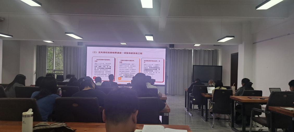 李扬颖以“坚持正风肃纪反腐相贯通”为题,传达学习习近平总书记关于风腐同查同治的重要论述,深入剖析了坚持正风肃纪反腐相贯通的内在逻辑,深刻阐释了进一步深入推进“以同查严惩风腐交织问题、以同治铲除风腐共性根源”是打好反腐败斗争攻坚战、持久战、总体战的重要举措。李扬颖还以三大警示“忽视党性修养必然走向堕落、制度空转必然走向塌方、脱离群众必然丧失执政根基”给在座的每一位党员干部敲响了警钟,带来了深刻启发。