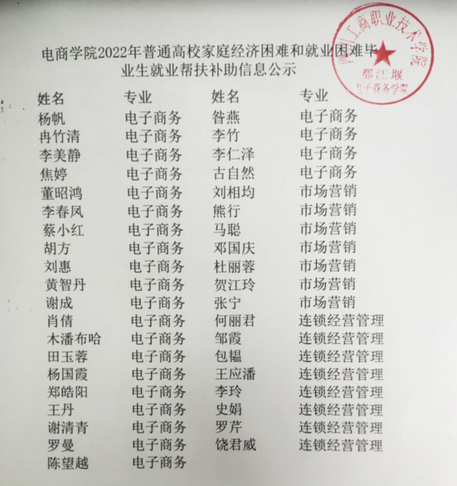 根据《mksports关于2022年普通高校家庭经济困难和就业困难毕业生就业帮扶补助的通知》将对象调整为脱贫家庭毕业生、边缘易致贫家庭毕业生、突发严重困难家庭毕业生、城乡低保毕业生、特困救助毕业生、孤儿毕业生、残疾毕业生7类毕业生,进行就业帮扶及补助,根据信息采集,拟对以下39名同学进行帮扶与补助。特此公示,公示时间2022年6月22日-24日,期间如有异议请实名向公司反映,电话18884162096。